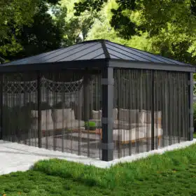 - Easy-to-clip hidden hooks – freely running on the gazebo track line