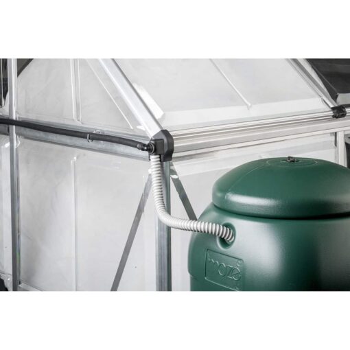 Palram – Canopia greenhouses already come with gutters and handy outlets on each corner. Therefore you can make harvesting rainwater even easier with the Greenhouse Gutter Connect Kit. The Gutter Connector Kit divert all rainwater to a single outlet. So you can connect it into either an external water tank (NOT included) or directly into a nearby garden bed.