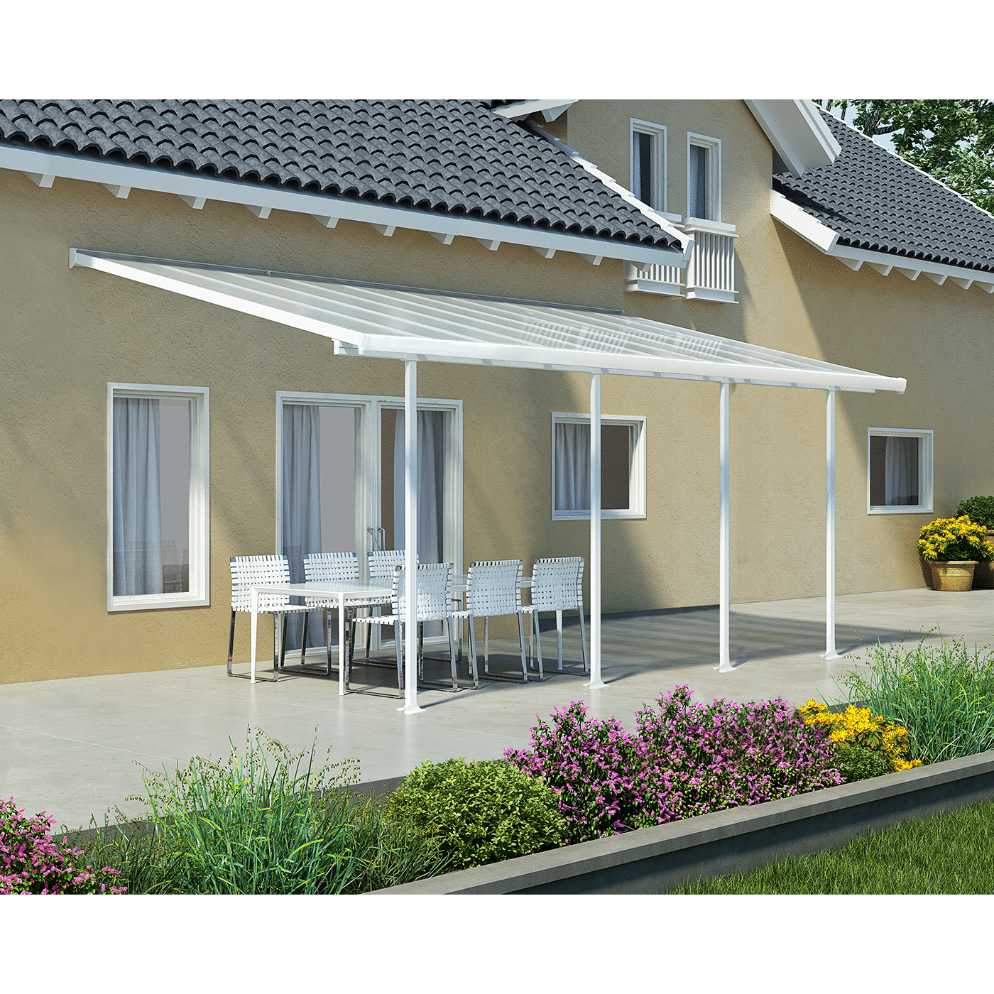 Feria 3 patio cover enjoy your outdoors year-round in a stylishly crafted and sturdy addition to your outside living space. Partake of family get-togethers and cookouts without fearing the fickle weather will ruin your fun. The Feria is an aesthetic, multi-purpose, maintenance free roofing solution allowing for various outdoor uses such as a pergola, carport, sun lounge etc. It was designed to be simply assembled by 2 people; it requires no experience, no special skills and no special tools. The Feria provides your family with an elegant, sturdy and rust-free retreat for years to come.